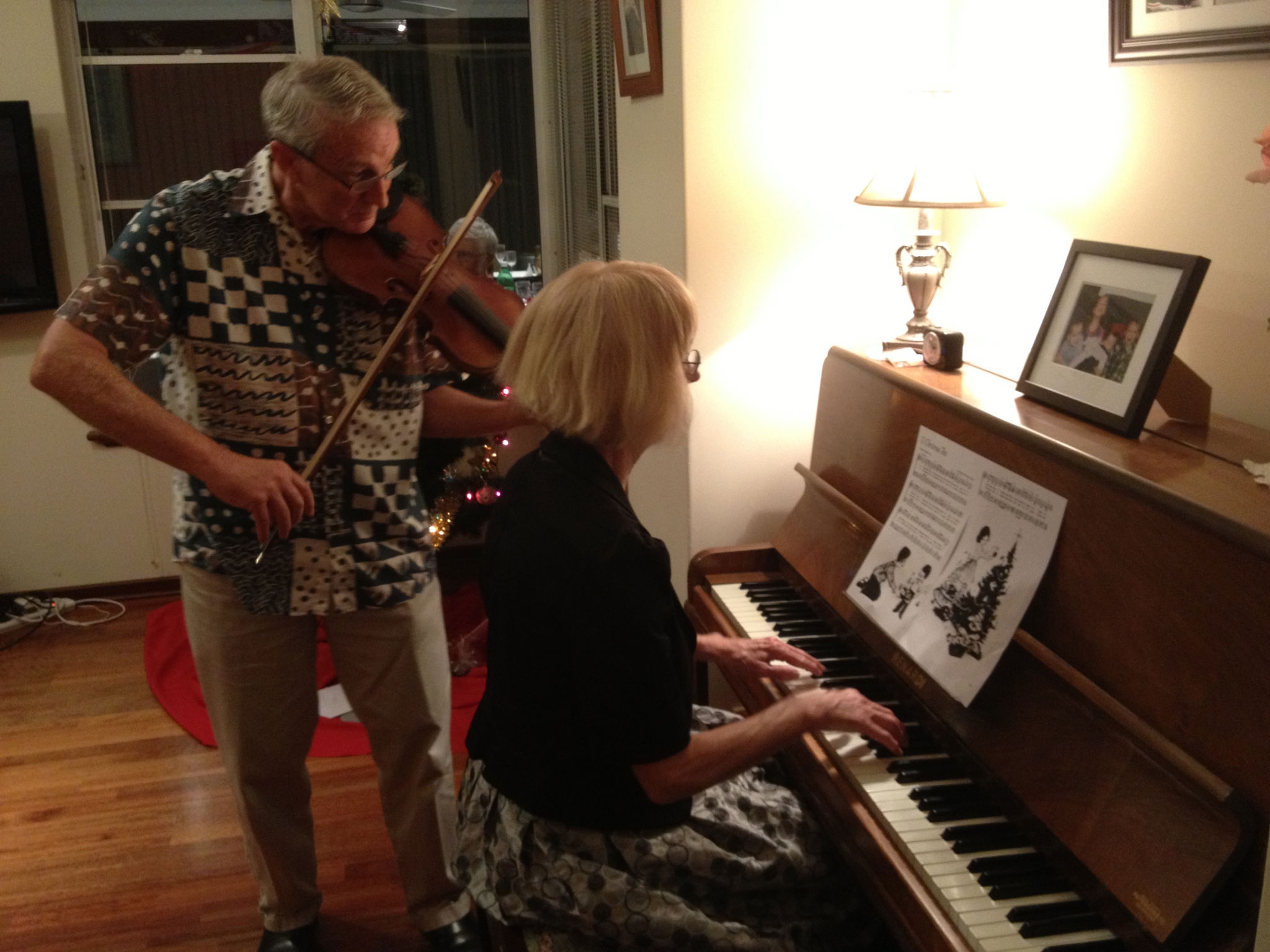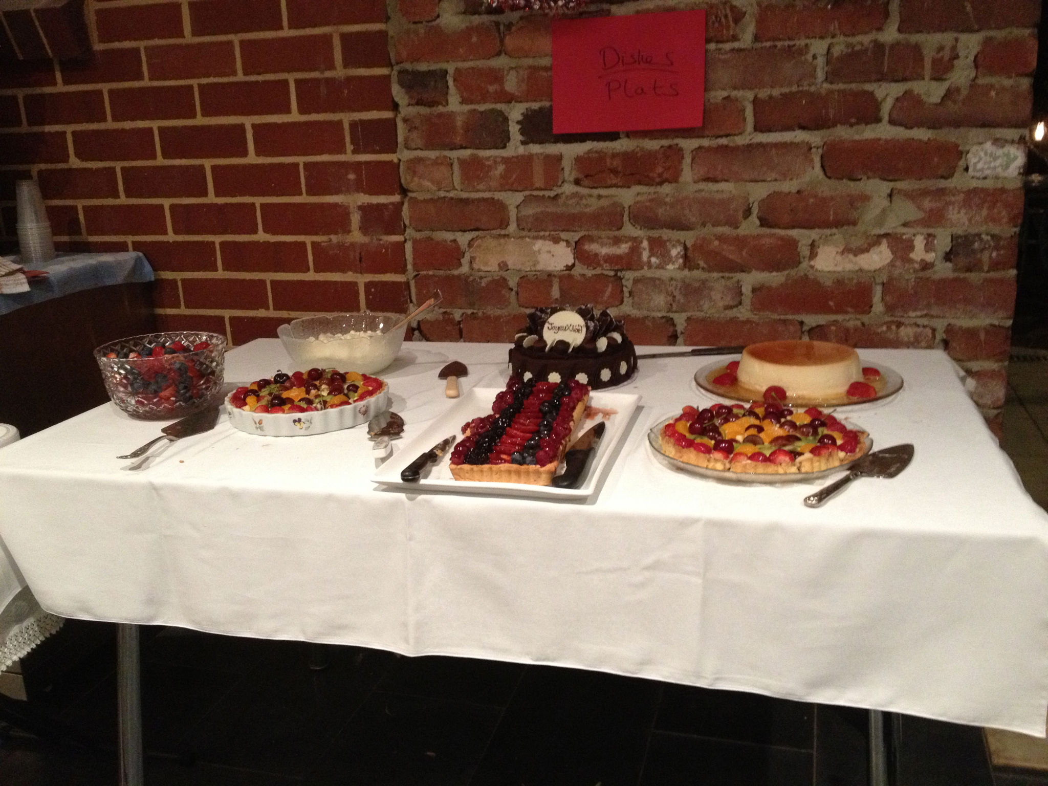 Once this sumptious meal was over, the guest-spouses were treated to live entertainment in french, performed by our students. One of the most uplifting song from the french movie: Les Choristes – “Vois sur ton Chemin” was sung in french by all students, followed by a recital of Jean de La Fontaine fable: Le Corbeau et le Renard performed by Val. Cecil gave a passionate recital of one of Piaf’s songs: Les Amants d’un Jour, followed by a short skit of Jacques Prevert: L’Accent Grave by Ginny and Aileen. This gloriously french evening concluded with another befitting song: Mon Beau Sapin with live accompaniment. On the piano: Jenny and violin: Peter.